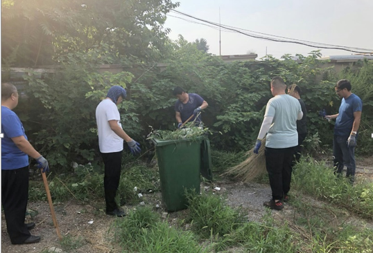 義務(wù)勞動現(xiàn)場,大家齊心協(xié)力,不怕垃圾臟亂,不怕蚊蟲叮咬,用鐵锨鏟、掃帚掃、鋤頭鉤,用手把垃圾、雜草一點一點掏出來,用手推車運走……雖然時值七月,炙陽似火,但橙色高溫依然擋不住干部員工如火的工作熱情,一個個熱火朝天,奔波忙碌的身影勾勒著勞動的美。