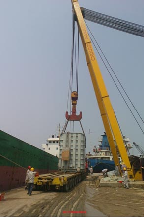 為充分發(fā)揮大件碼頭和山東海河陸運(yùn)第一座大型吊車(chē)的重要作用,實(shí)現(xiàn)區(qū)域大件海運(yùn)、港口裝卸、陸運(yùn)一條龍服務(wù),羊口港務(wù)局利用公路、港口優(yōu)勢(shì)與濟(jì)南奔騰運(yùn)輸有限公司簽訂了5—10年的長(zhǎng)期合作協(xié)議,主要自羊口港為國(guó)家電網(wǎng)定向輸出特高壓直流、交流大型變壓器設(shè)備(單件重量245T,體積10M×4M×5M),2014年預(yù)計(jì)運(yùn)輸150T-500T重量設(shè)備30臺(tái)左右,吞吐量將增加近萬(wàn)噸。目前,已經(jīng)裝卸大型變壓器7臺(tái),其他設(shè)備4臺(tái),累計(jì)實(shí)現(xiàn)收入近30萬(wàn)元。